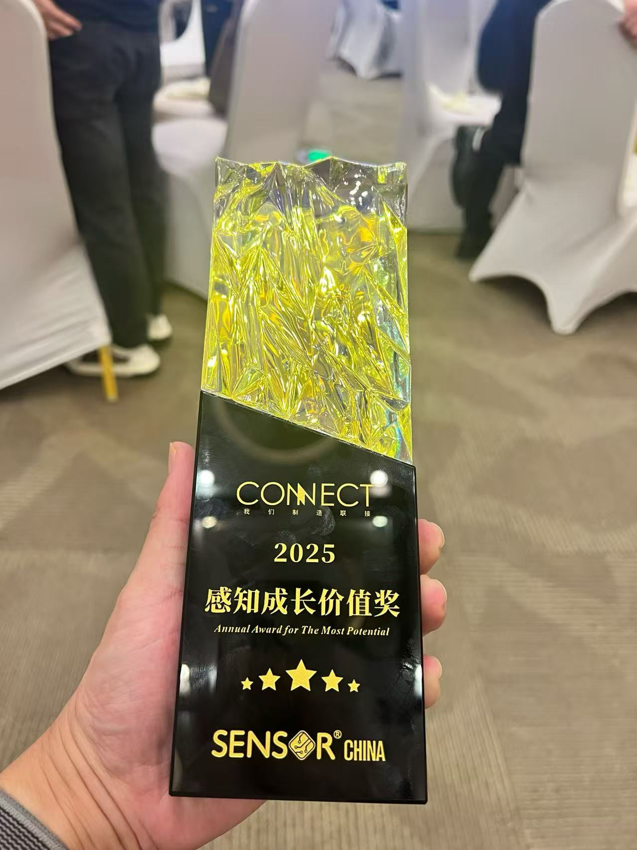 在本次展会中,联能电子荣获了2025年感知成长价值奖。该奖项作为sensor china的重要荣誉,旨在表彰在技术创新、产业落地与生态建设中具有突出成长潜力的企业。联能电子凭借二十余年深耕压电陶瓷领域的技术积淀,以及传感器产品在工业监测、测试等领域的规模化应用成果成功获奖。